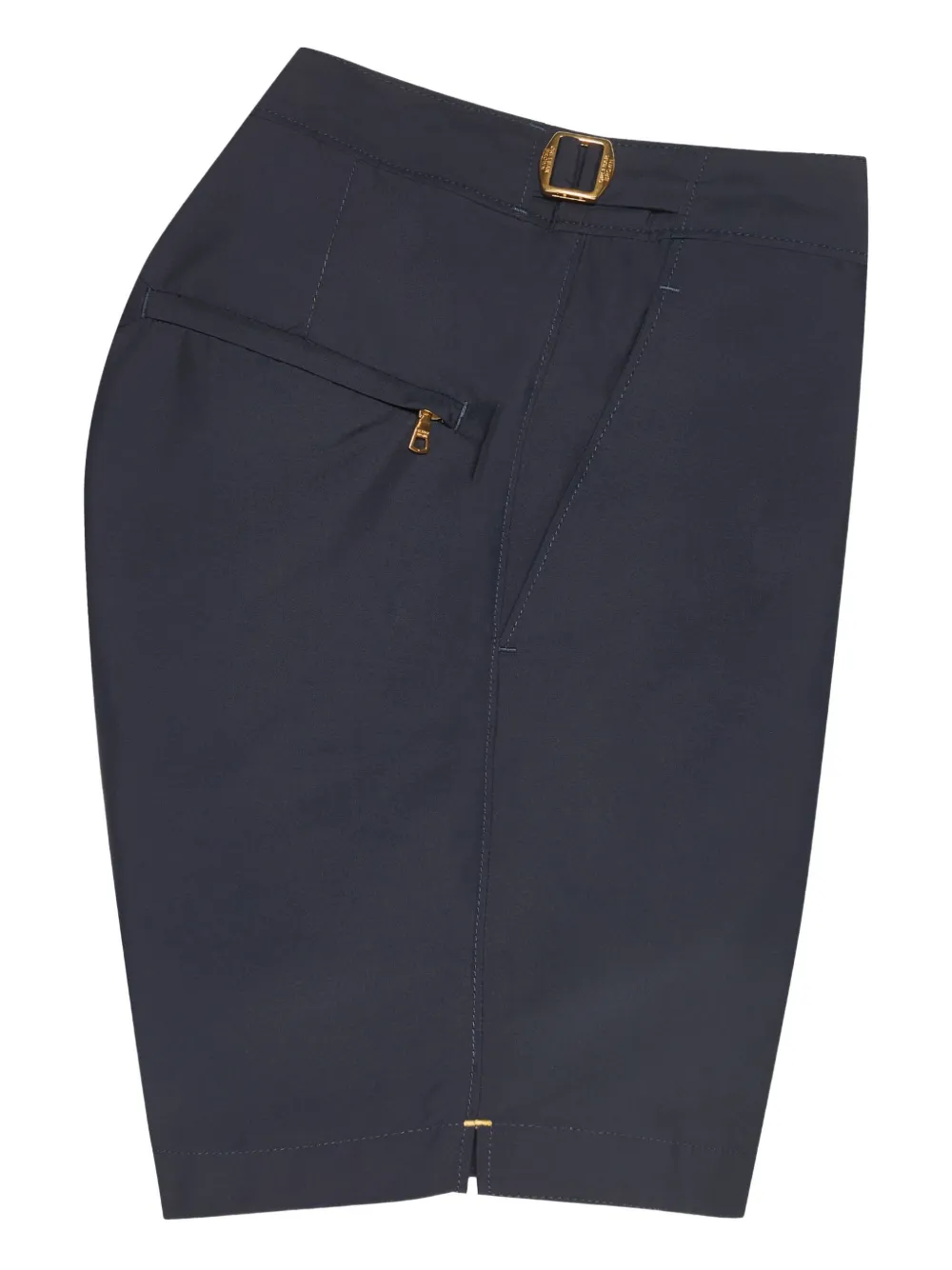 marineblauw verstelbare taillebanden zijzakken verborgen rits- en drukknoopsluiting mesh voering Zwemkleding moet over je eigen kleding worden aangepast.