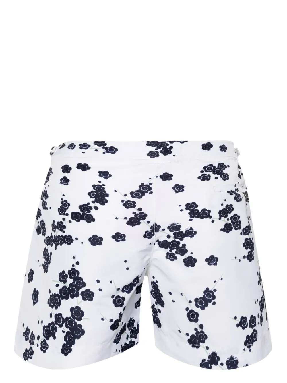 wit/veelkleurig all-over bloemenprint vogelprint op de voorkant logopatch aan de zijkant mid waist verborgen sluiting aan de voorkant verstelbare bandjes twee diagonale zijzakken achterzak met ritssluiting rechte pijpen korte zijsplitten dijlengte mesh voering Dit item wordt verkocht met een beschermhoes. Zwemkleding moet over je eigen kleding worden aangepast.