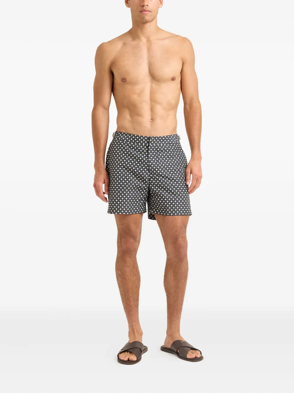 ijsblauw geometrisch patroon gespsluiting platte voorkant zijzakken Zwemkleding moet over je eigen kleding worden aangepast.