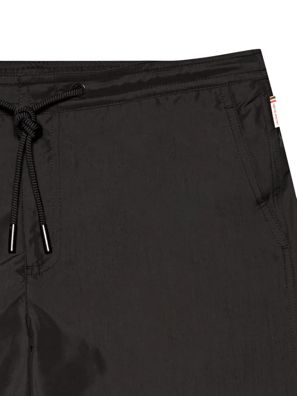 zwart gerecycled polyester trekkoordtaille gegraveerd logo elastische tailleband aan de achterkant mini logo label twee steekzakken aan de zijkant paspelzak aan de achterkant Zwemkleding moet over je eigen kleding worden aangepast.