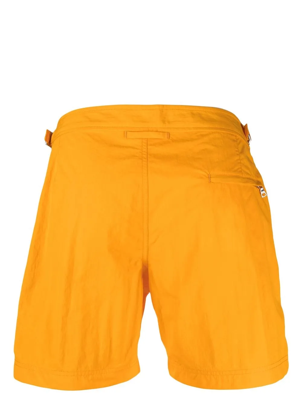 Zonsondergang geel, verborgen sluiting aan de voorkant, gespsluiting aan zijkant, twee ingenaaide zijzakken, achterzak met ritssluiting, straight-fit en knielengte. Zwemkleding moet over je eigen kleding worden aangepast..