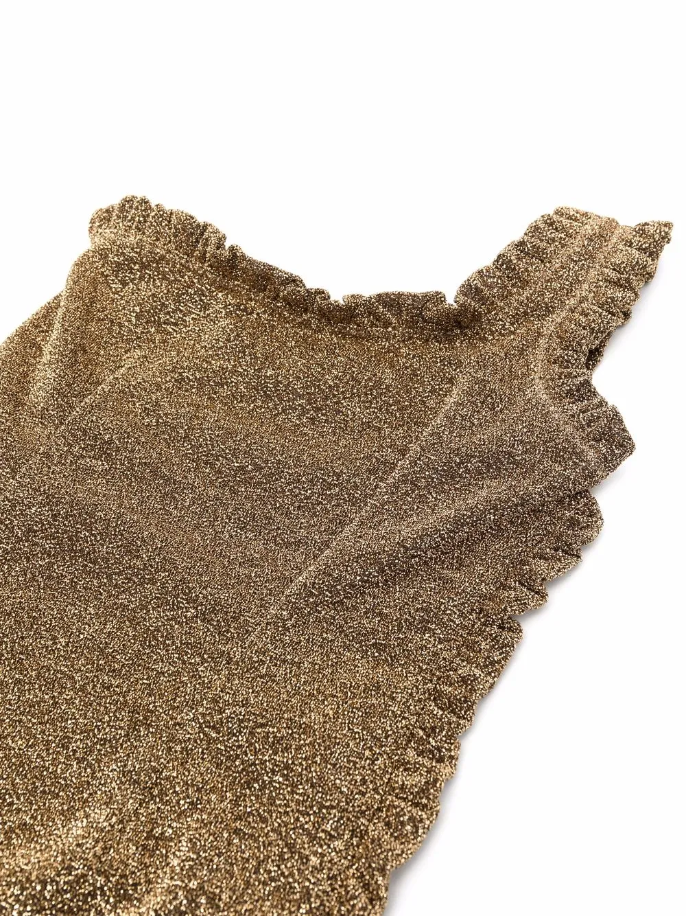 Stretch design, metallic garen, asymmetrisch en ruche details. Zwemkleding moet over je eigen kleding worden aangepast..