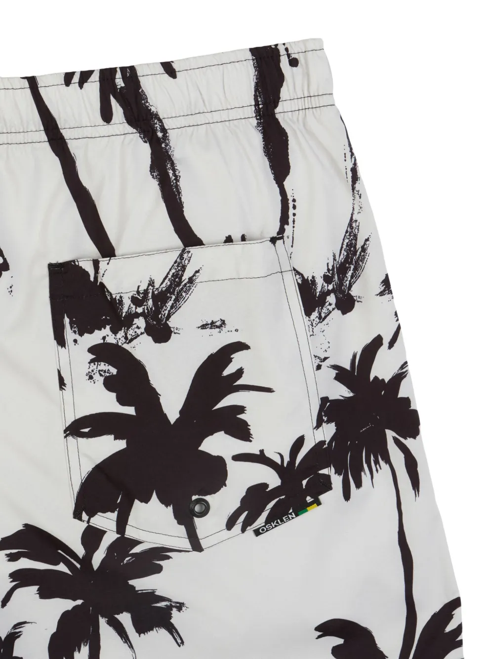 wit elastische tailleband opgestikte zak aan de achterkant palmboomprint Zwemkleding moet over je eigen kleding worden aangepast.