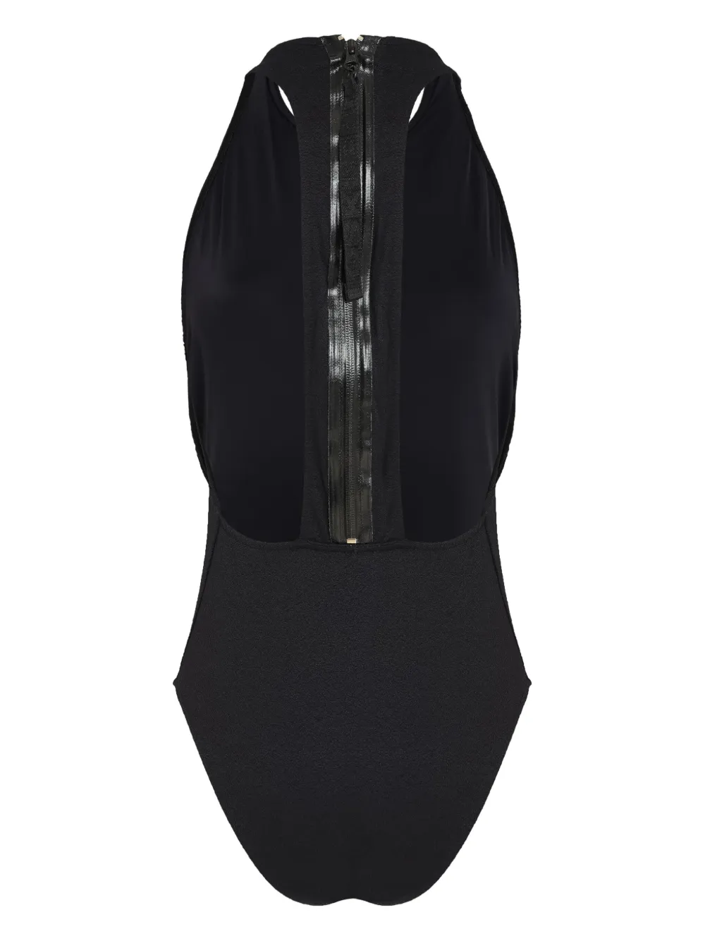 zwart onesie design rits aan de achterkant ronde hals mouwloos racerback Zwemkleding moet over je eigen kleding worden aangepast.