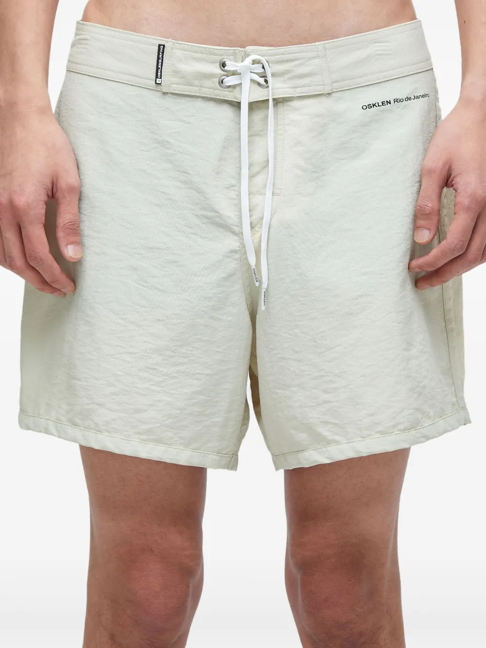 lichtbeige trekkoordsluiting opgestikte zak aan de achterkant logoprint op de voorkant Zwemkleding moet over je eigen kleding worden aangepast.