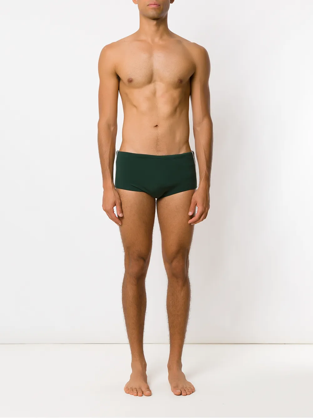 Gestreepte zwembroek van Osklen voorzien van elastische taille, streepdetail aan de zijkant en voering. Zwemkleding moet over uw eigen kleding aan worden gepast.