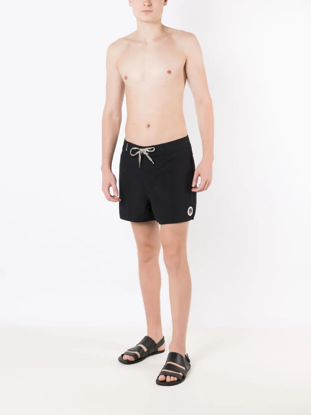 Zwart, logopatch aan de zijkant, trekkoordsluiting bij de taille, twee ingenaaide zijzakken, opgestikt vak aan de achterkant en dijlengte. Zwemkleding moet over je eigen kleding worden aangepast..