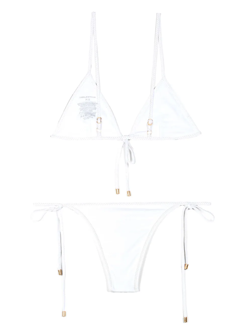 wit jersey textuur striksluiting aan de voorkant verstelbare spaghettibandjes triangel cup contrasterende stiksels gevlochten details bikinibroek met striksluiting aan de zijkant Zwemkleding moet over je eigen kleding worden aangepast.