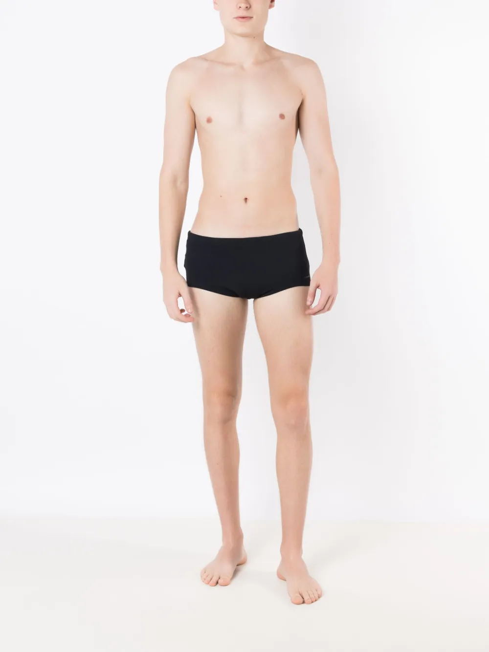 Zwart, stretch design, logo versiering, elastische tailleband en dijlengte. Zwemkleding moet over je eigen kleding worden aangepast..