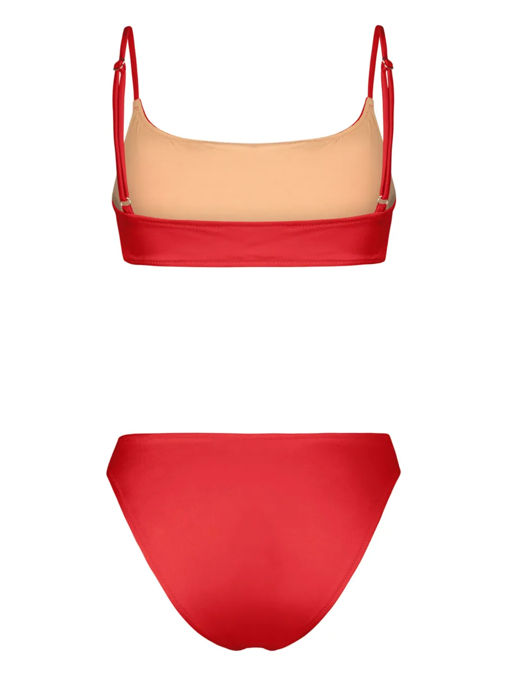 helderrood pull-on model verstelbare spaghettibandjes zilverkleurige studs Zwemkleding moet over je eigen kleding worden aangepast.