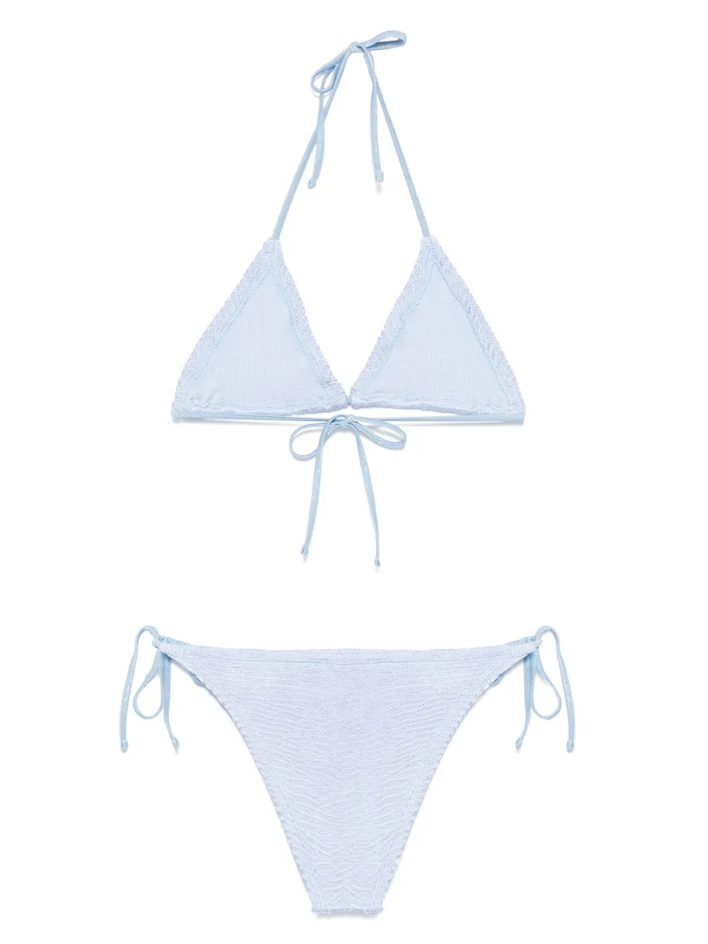 maagdenpalmblauw gekreukte afwerking stretch design set van twee Bikinitop: halternek striksluiting striksluiting aan de achterkant triangel cup elastische band ongevoerd Bikinibroek: striksluiting aan de zijkant hoog uitgesneden ongevoerd Zwemkleding moet over je eigen kleding worden aangepast.