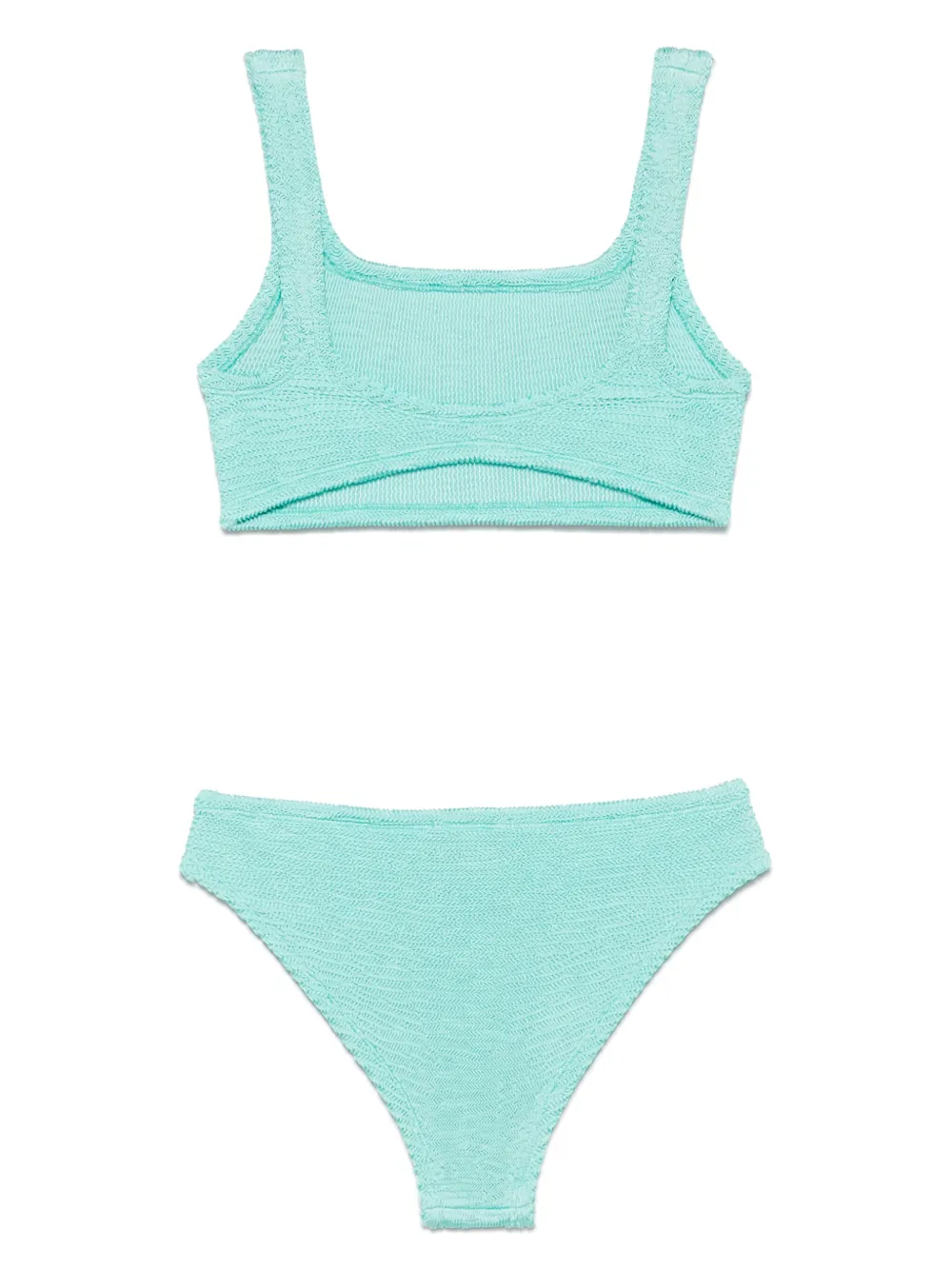 blauw stretch design seersucker textuur slip-on stijl ongevoerd Bikinitop: vierkante hals mouwloos laag uitgesneden rug Bikinibroek: klassieke bikinislip Zwemkleding moet over je eigen kleding worden aangepast.