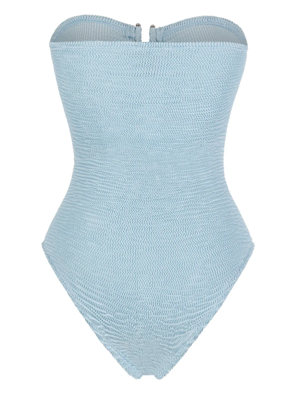 lichtblauw stof met textuur strapless design U-Bar haak aan de voorkant Zwemkleding moet over je eigen kleding worden aangepast.