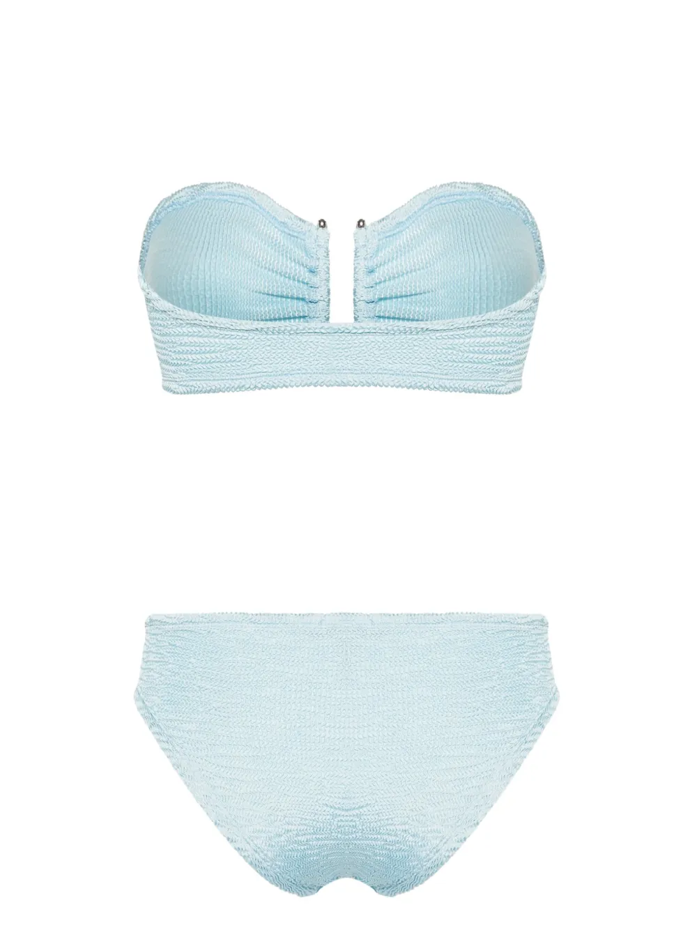 hemelsblauw stretch design seersucker textuurTop: bandeau strapless slip-on stijlBroek klassieke bikinislip volledige voering slip-on stijl Zwemkleding moet over je eigen kleding worden aangepast.