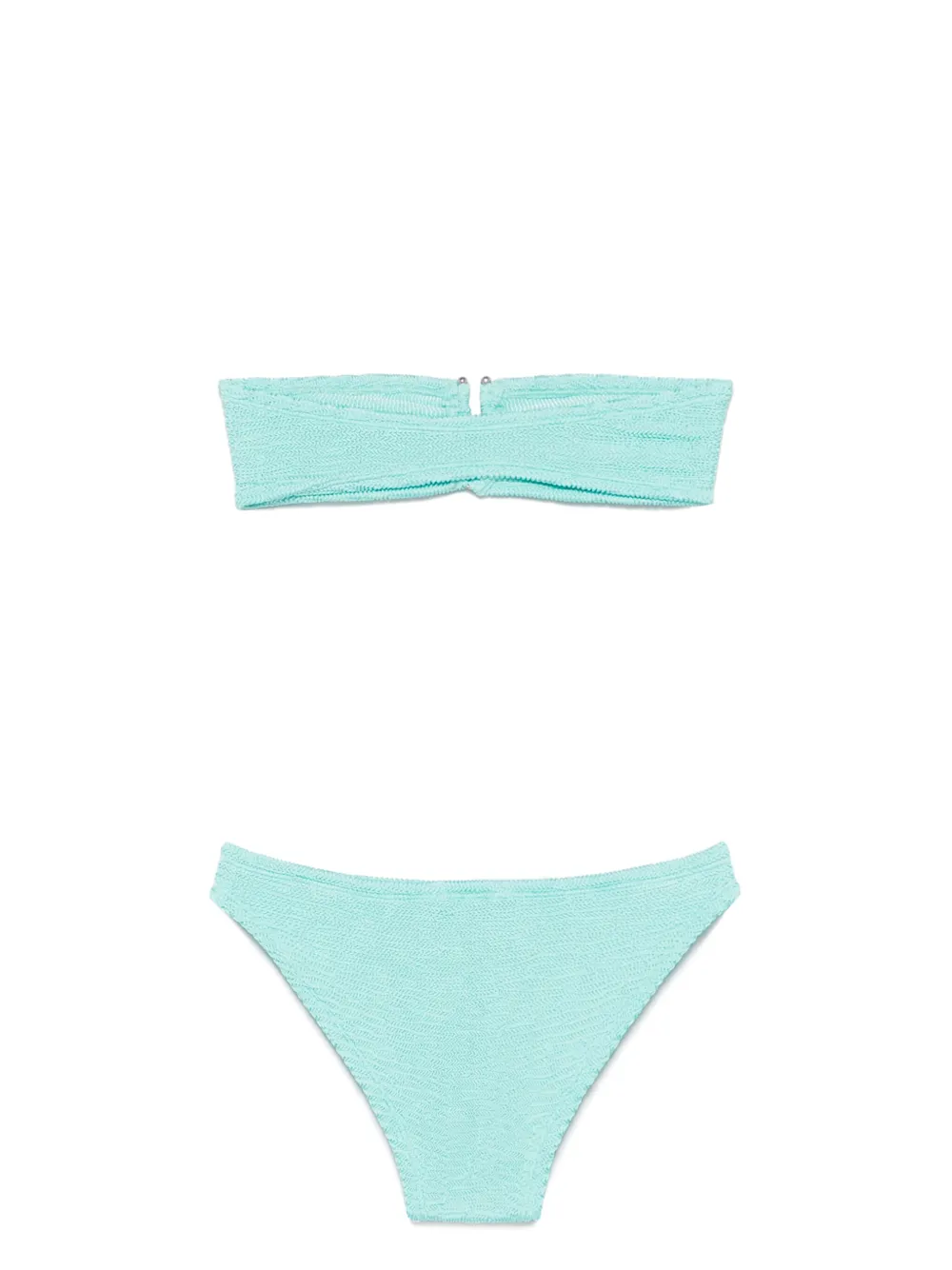 cyaanblauw gekreukte afwerking set van tweeBikinitop sweetheart-hals U-ring details ruchedetails naadloos straplessBikinislip mid waist hoog uitgesneden Zwemkleding moet over je eigen kleding worden aangepast.