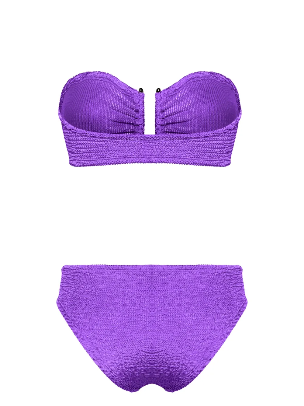 druivenpaars stretch design getextureerde afwerkingTop: bandeau strapless haakdetail aan de voorzijdeBroek low waist ongevoerd instapmodel Zwemkleding moet over je eigen kleding worden aangepast.