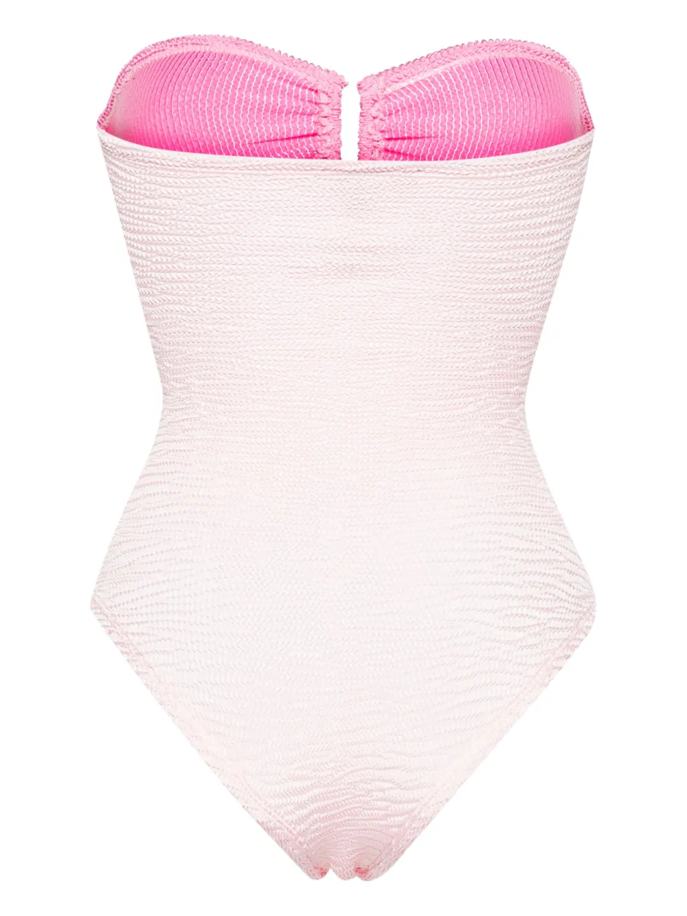 lichtroze/kauwgomroze stretch design gesmockt vlak vierkante hals bandeau ringdetail uitgesneden detail high waist hoog uitgesneden ongevoerd Zwemkleding moet over je eigen kleding worden aangepast.