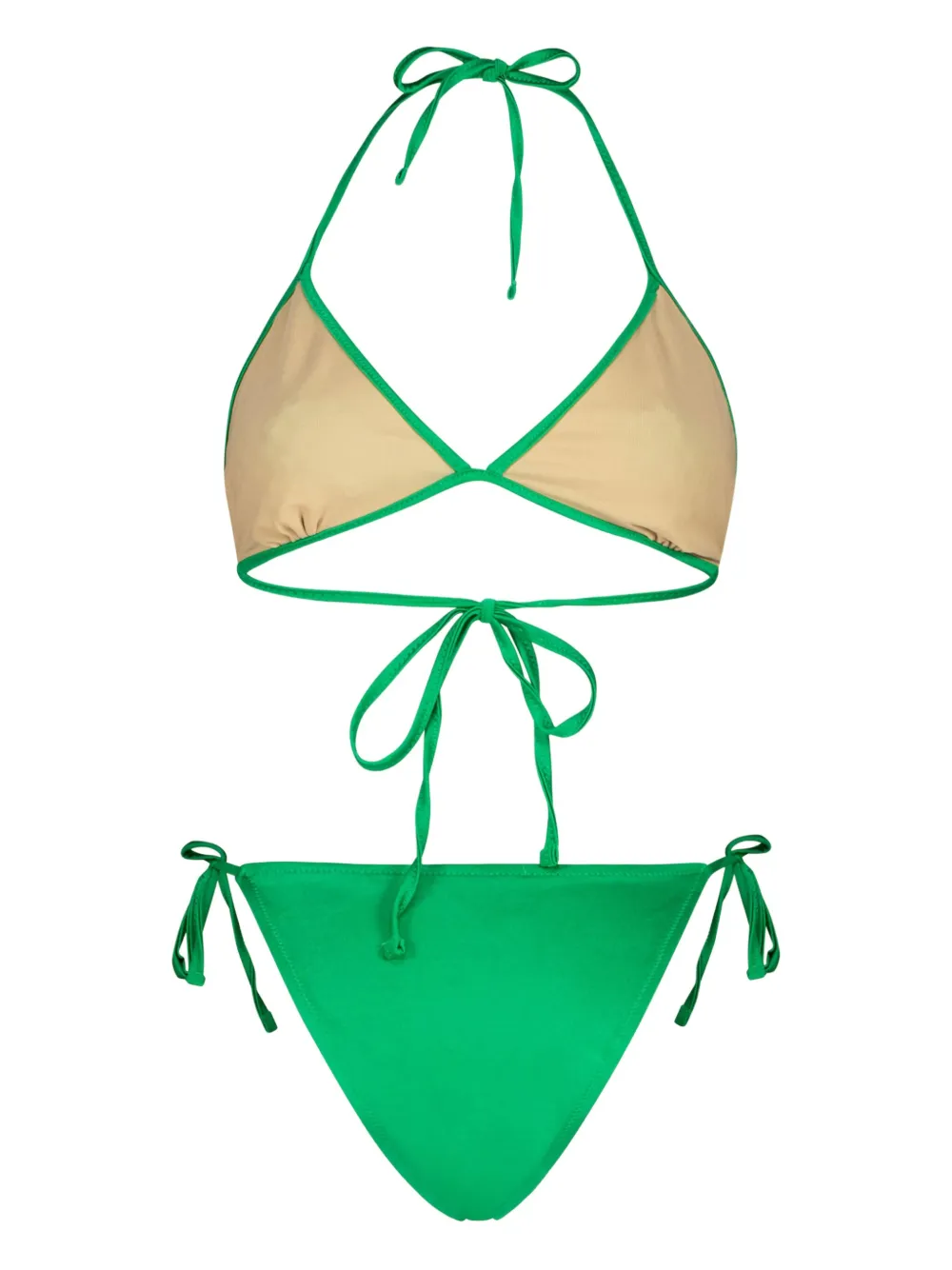 smaragdgroen striksluiting aan de achterkant verfraaid met kristallen bikinibroek met striksluiting aan de zijkant Zwemkleding moet over je eigen kleding worden aangepast.