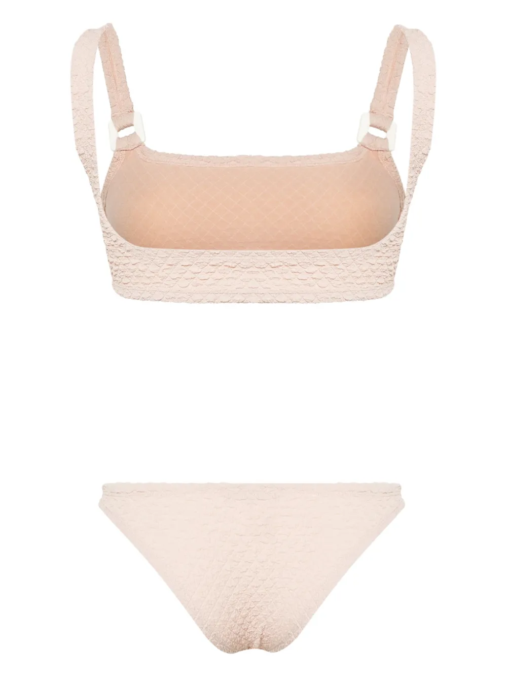 lichtbeige stretch design getextureerde afwerking vierkante detailsTop: vierkante hals mouwloos rechte open rugBroek hoog uitgesneden ongevoerd instapmodel Zwemkleding moet over je eigen kleding worden aangepast.