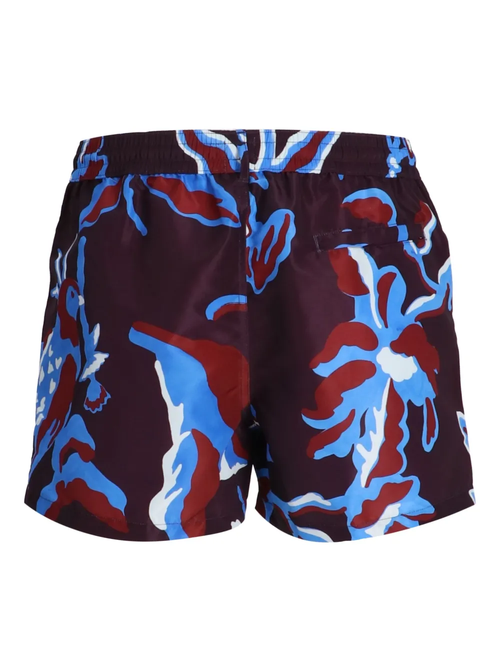 donkerpaars bloemenpatroon trekkoordsluiting achterzak all-over print Zwemkleding moet over je eigen kleding worden aangepast.