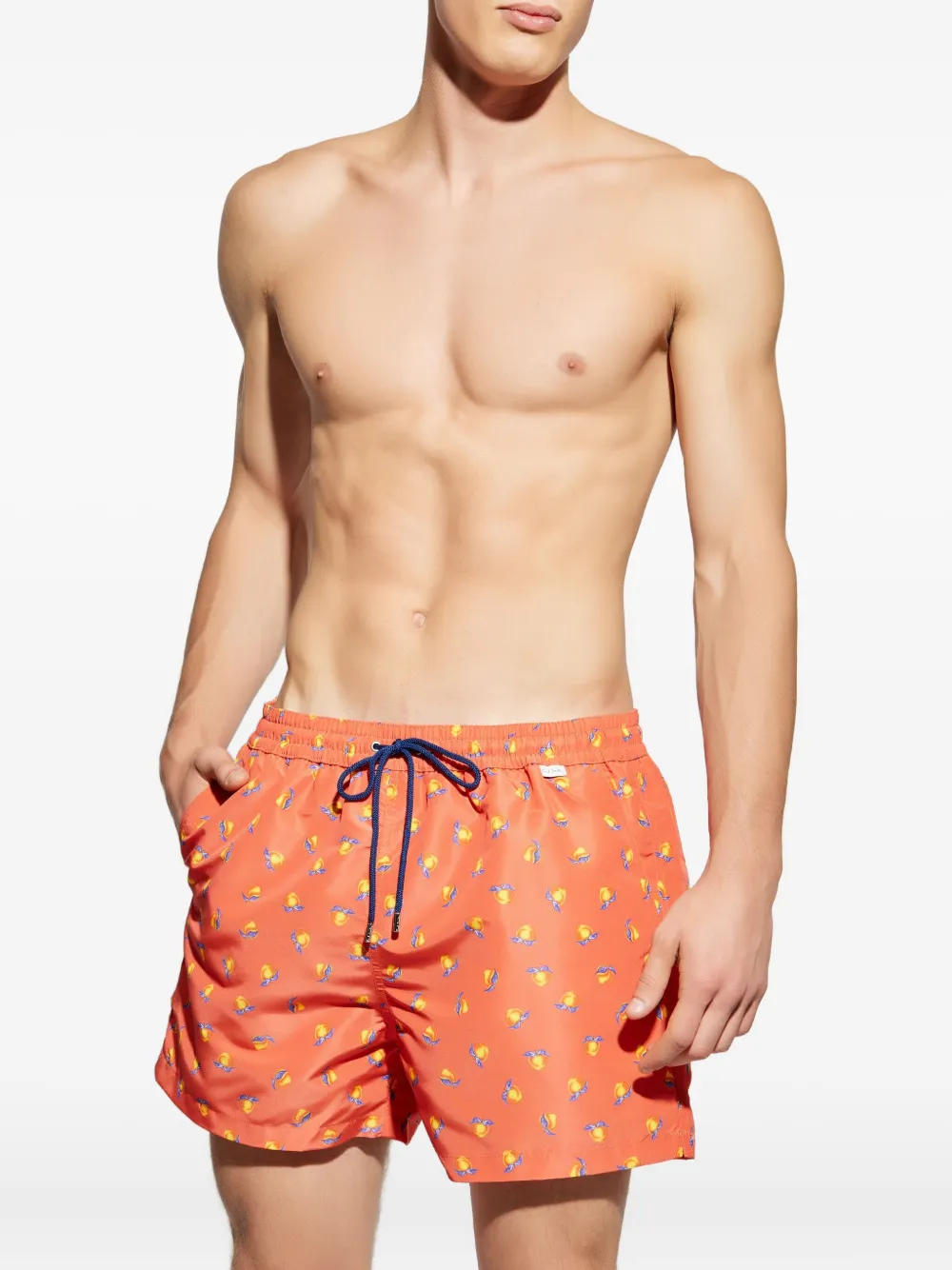 koraaloranje perzikprint trekkoordsluiting zijzakken elastische tailleband all-over patroon Zwemkleding moet over je eigen kleding worden aangepast.