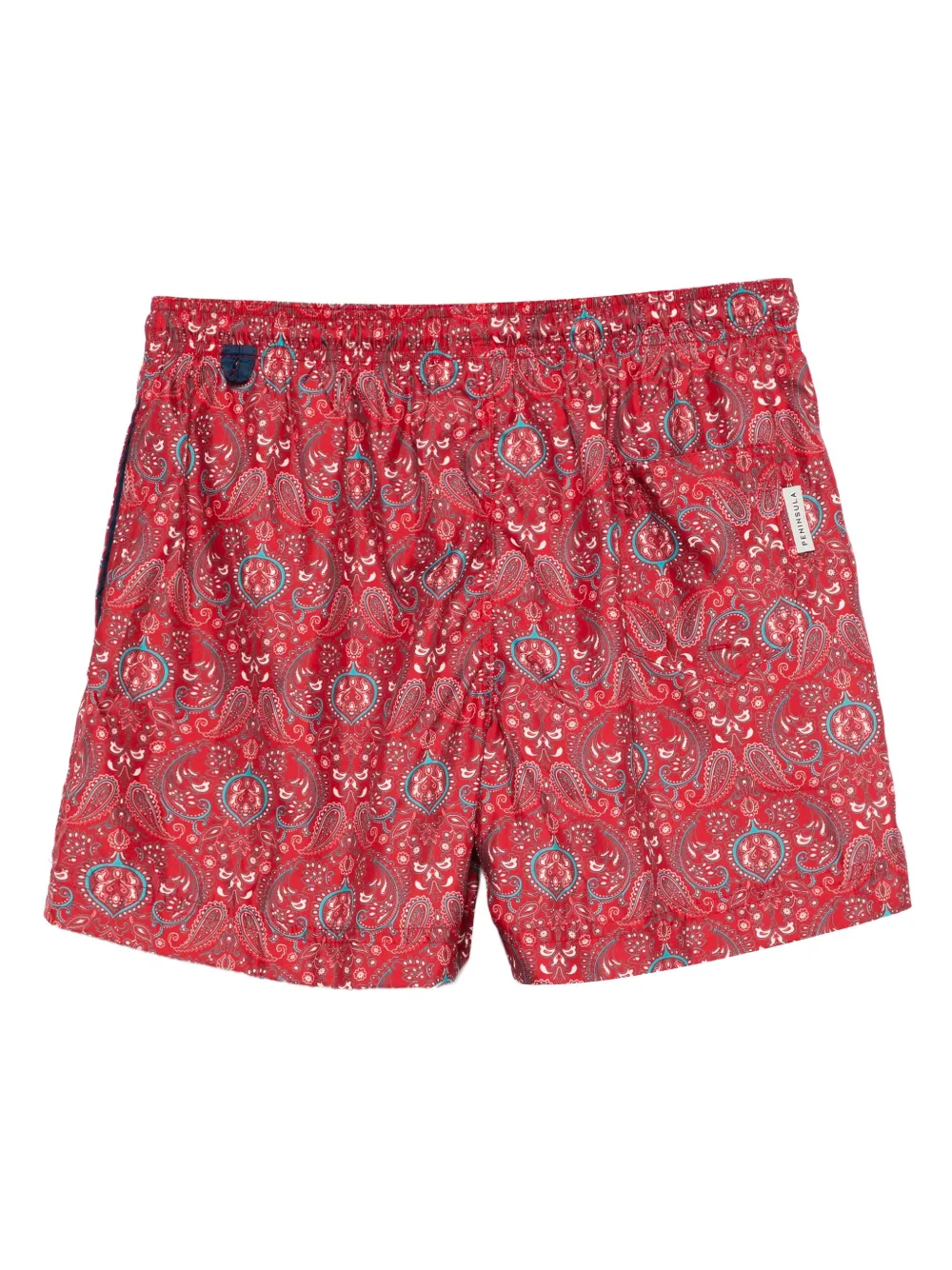 rood paisley-print trekkoordsluiting zijzakken elastische tailleband Zwemkleding moet over je eigen kleding worden aangepast.