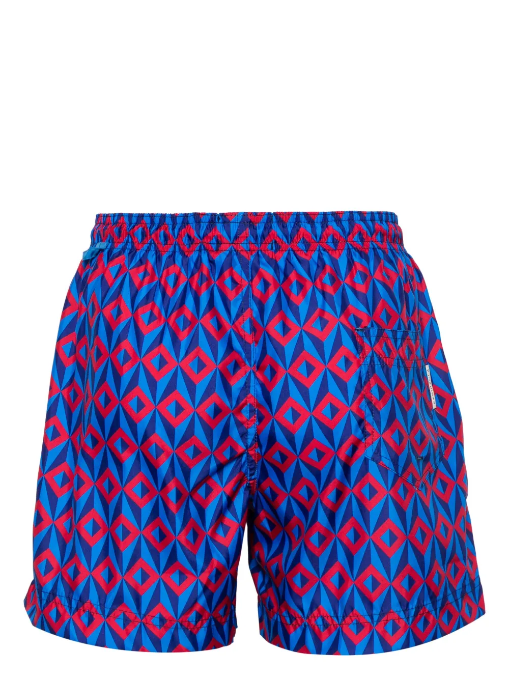 koningsblauw/veelkleurig gerecycled polyester geometrische print twee ingenaaide zijzakken korte zijsplitten dijlengte opgestikte zak aan de achterkant logoprint op de achterkant mesh voering elastische tailleband met trekkoord Zwemkleding moet over je eigen kleding worden aangepast. ^