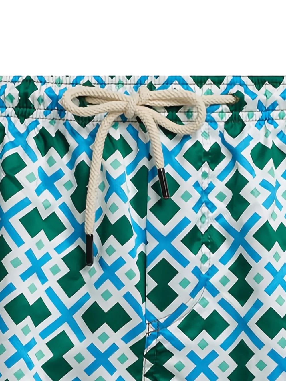 blauw geometrisch patroon elastische taille met trekkoordsluiting Zwemkleding moet over je eigen kleding worden aangepast.
