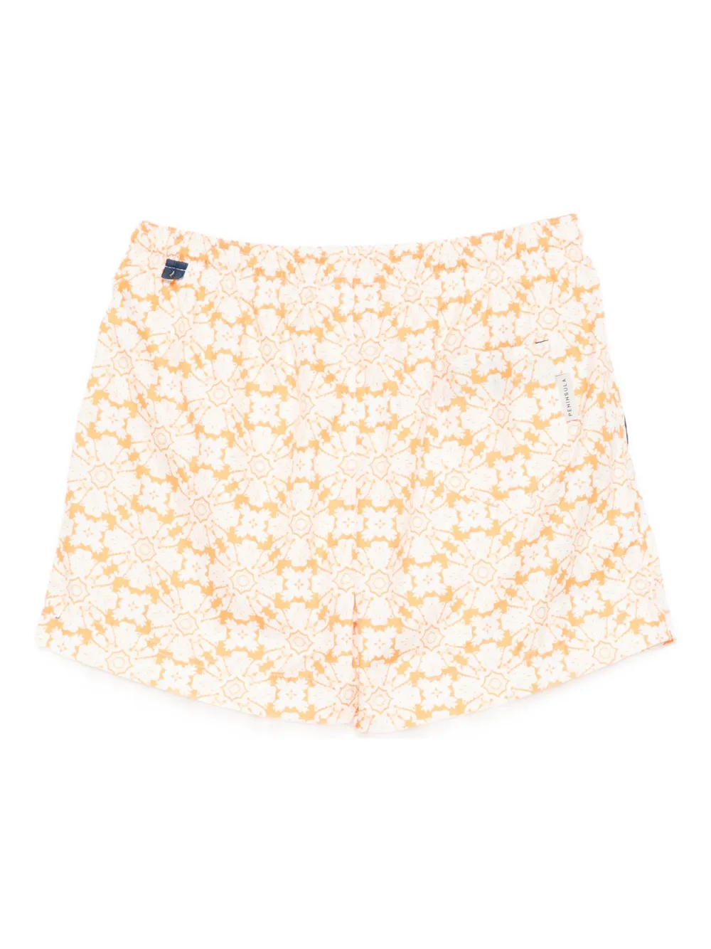wit oranje patroon trekkoordsluiting gerecycled polyester all-over print platte voorkant Zwemkleding moet over je eigen kleding worden aangepast.