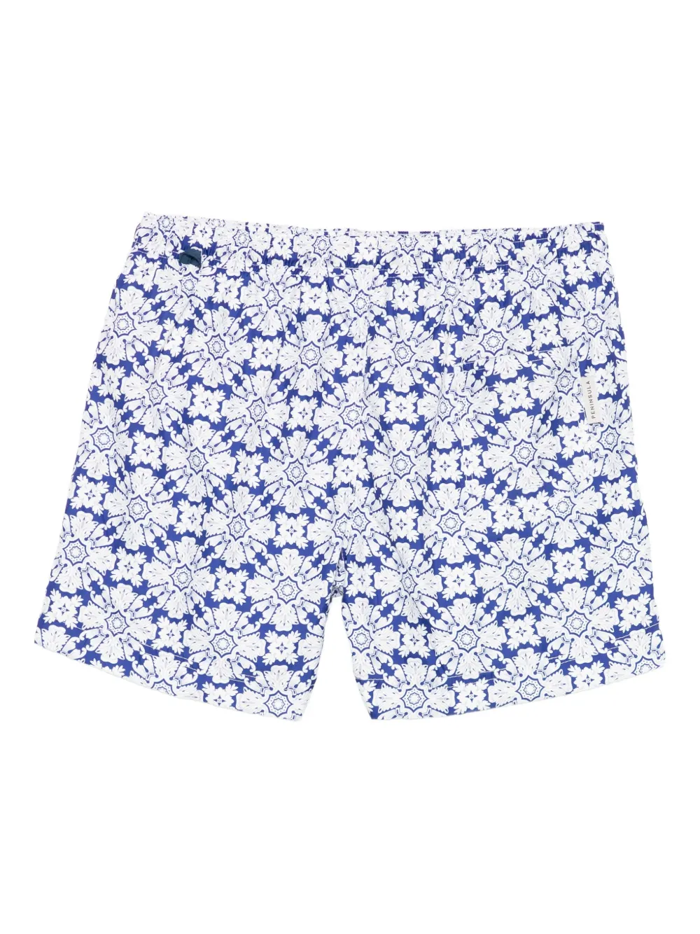 blauw trekkoordsluiting geometrisch patroon Zwemkleding moet over je eigen kleding worden aangepast.