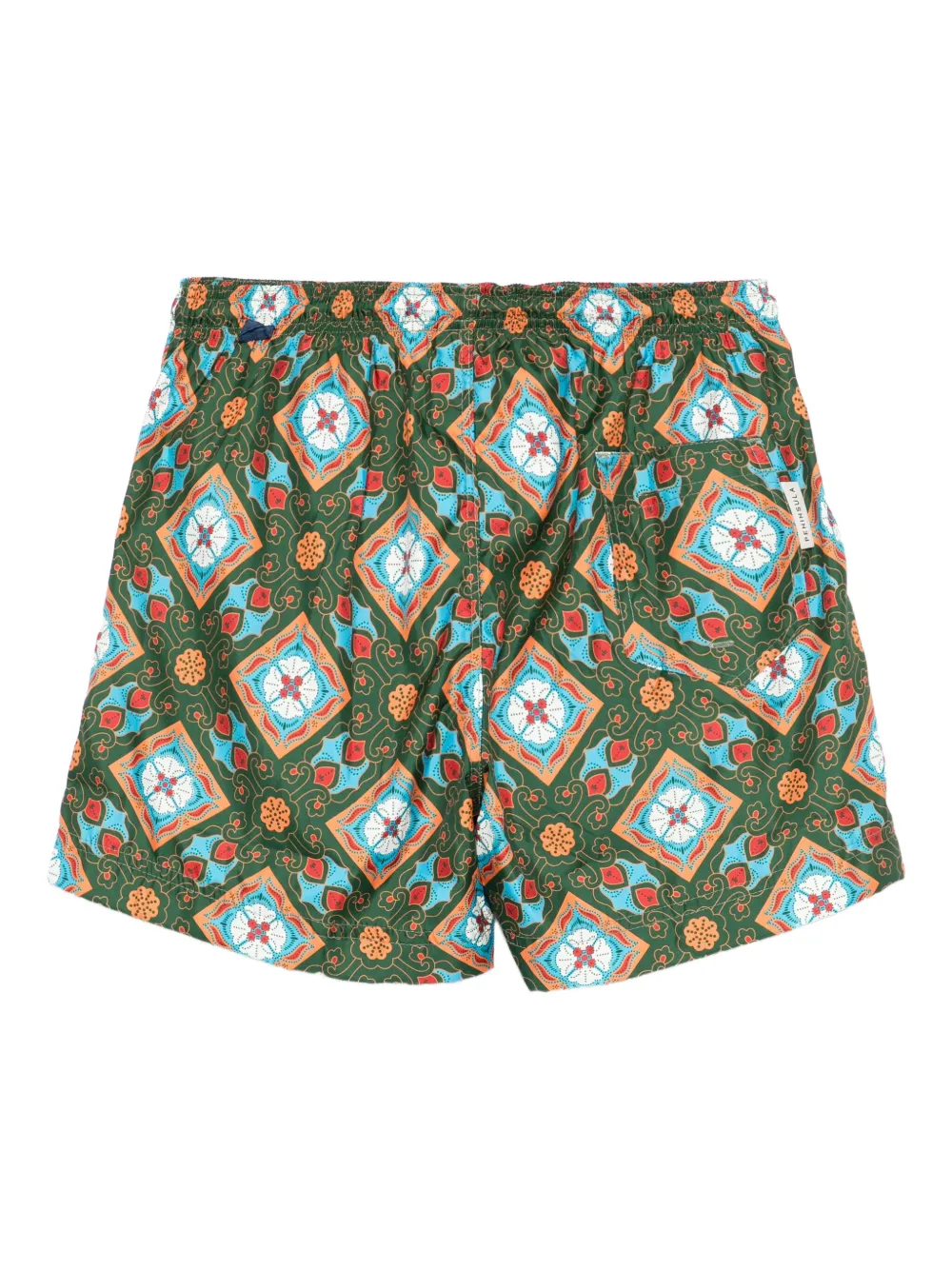 donkergroen tegelprint trekkoordsluiting elastische tailleband all-over patroon Zwemkleding moet over je eigen kleding worden aangepast.