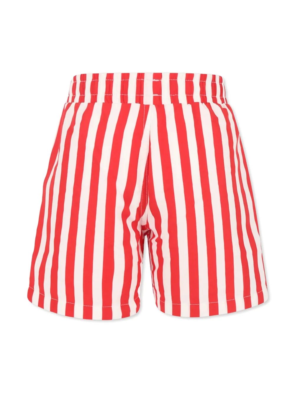 helderrood elastische tailleband met trekkoord twee steekzakken aan de zijkant geborduurd logo op de borst verticale strepen Zwemkleding moet over je eigen kleding worden aangepast.
