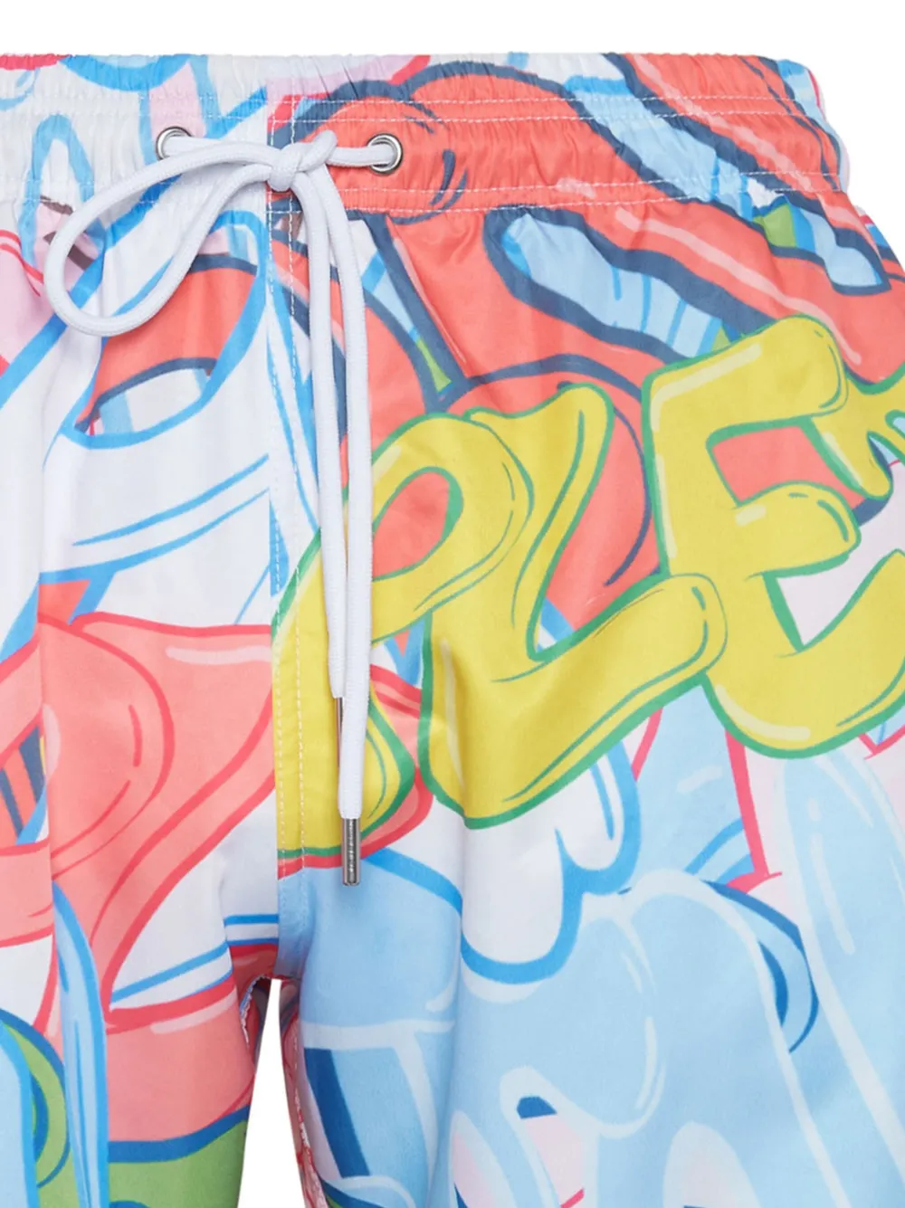veelkleurig graffiti print logo elastische tailleband met trekkoord twee steekzakken aan de zijkant logoplakkaat dijlengte Zwemkleding moet over je eigen kleding worden aangepast.
