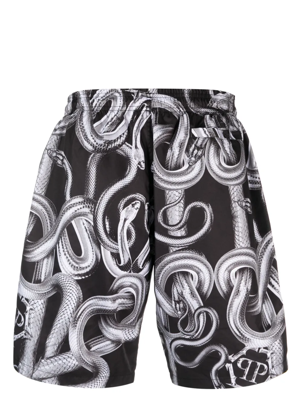 Zwart/wit, katoenmix, all-over slangenprint, elastische tailleband, paspelzak aan de achterkant en knielengte. Zwemkleding moet over je eigen kleding worden aangepast..