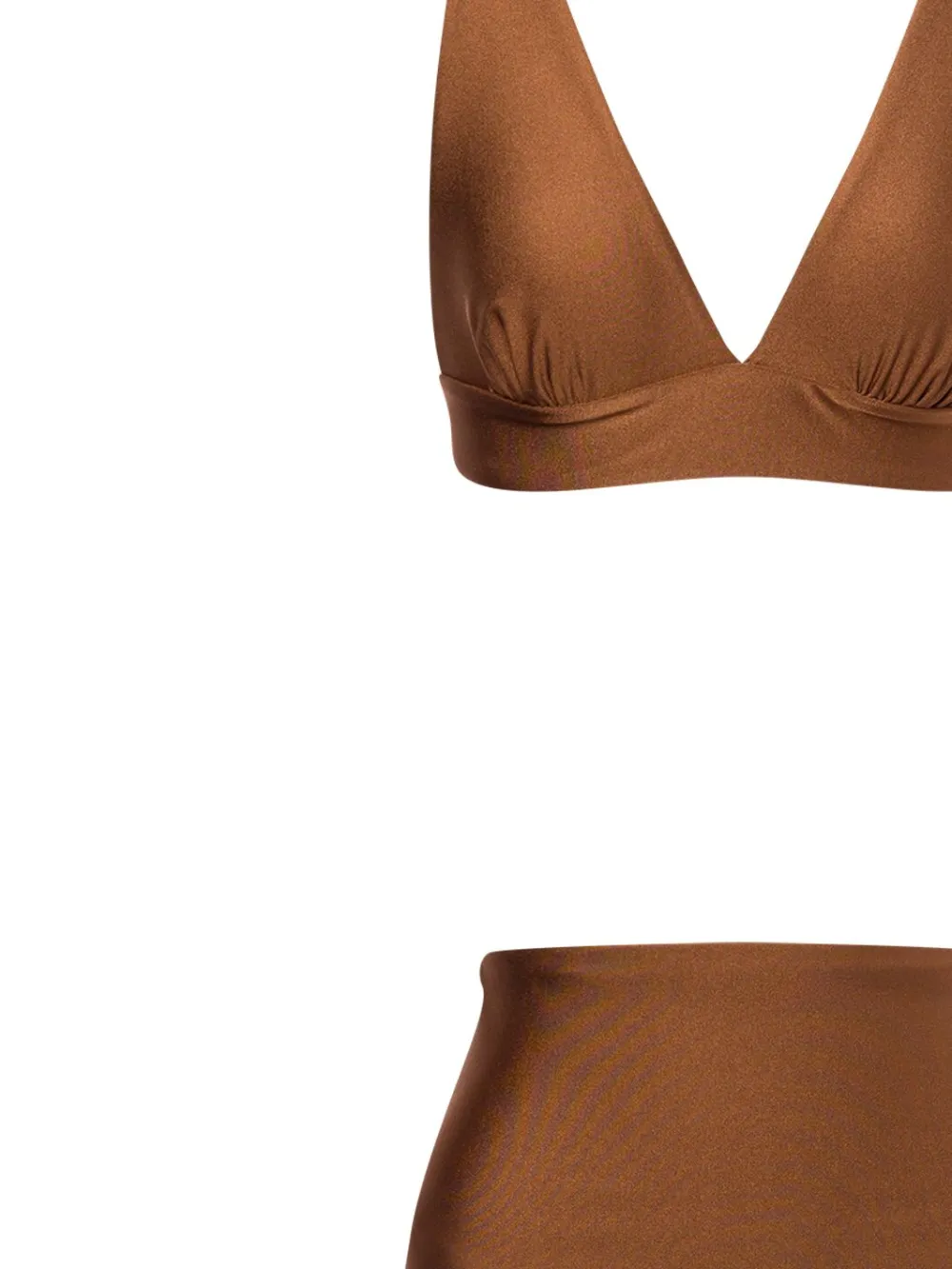 cognac bruin stretch design gedrapeerd design sluiting aan de achterkant V-vormige watervalhals high waist bikinibroek Zwemkleding moet over je eigen kleding worden aangepast.