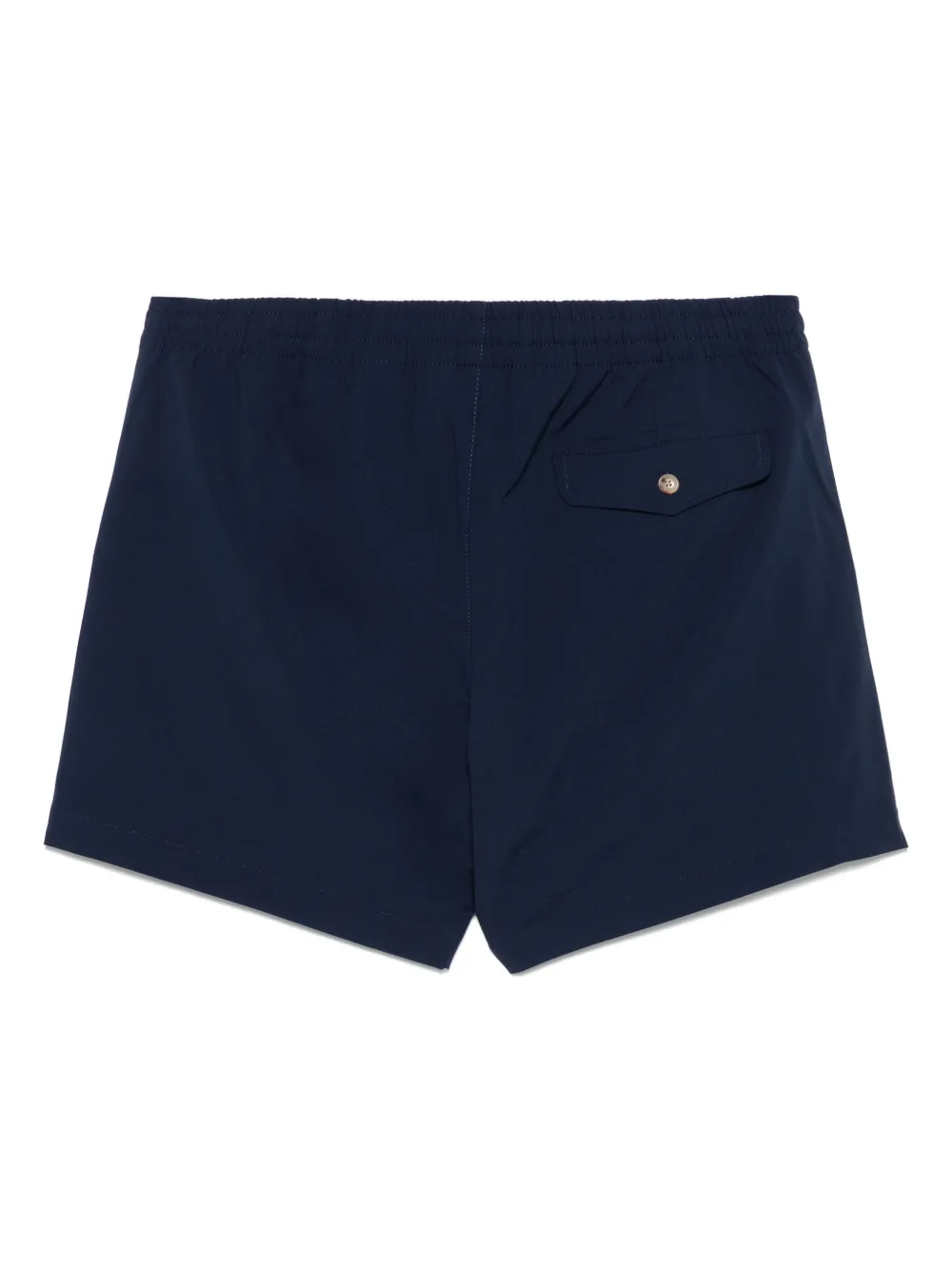 marineblauw knoop en ritssluiting elastische tailleband met trekkoord twee paspelzakken aan de zijkant Zwemkleding moet over je eigen kleding worden aangepast.