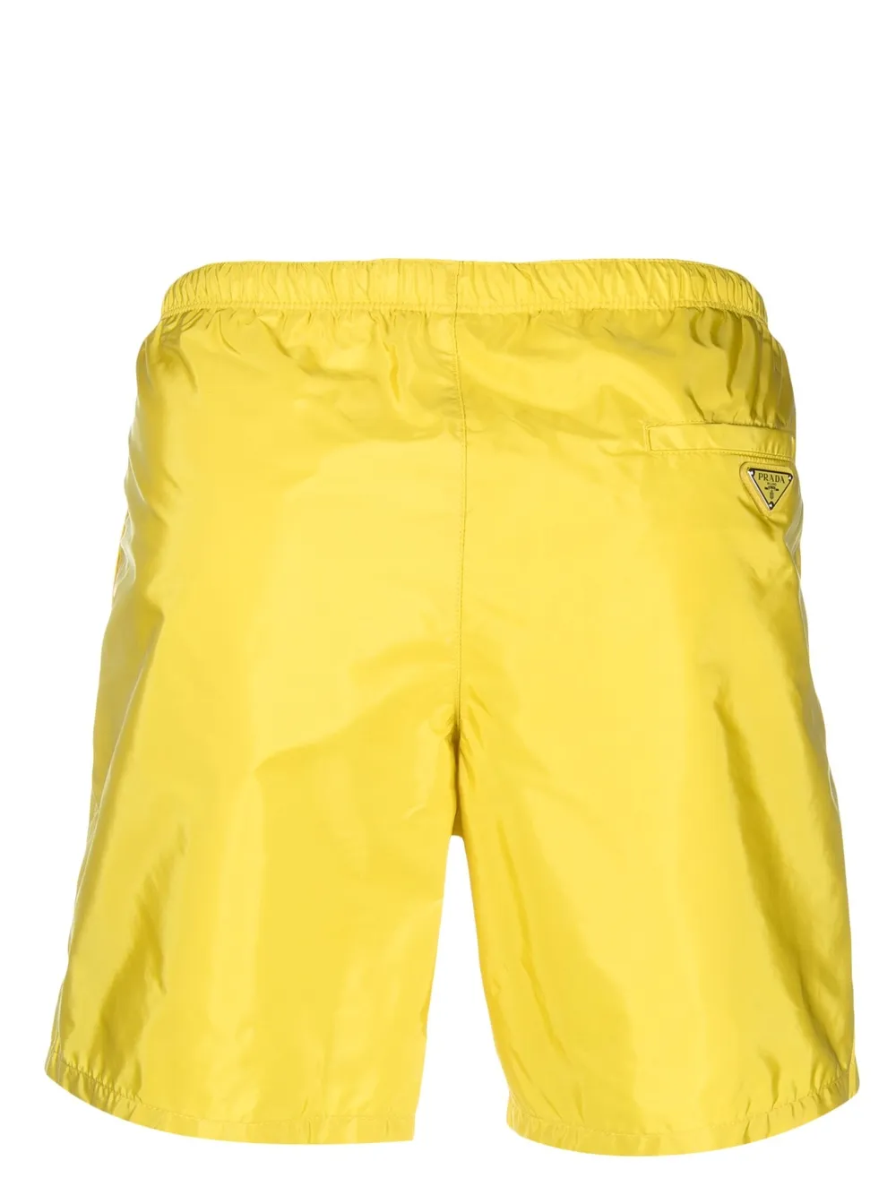 citroengeel gerecycled nylon zilverkleurig logoplakkaat elastische tailleband twee ingenaaide zijzakken paspelzak aan de achterkant Zwemkleding moet over je eigen kleding worden aangepast.