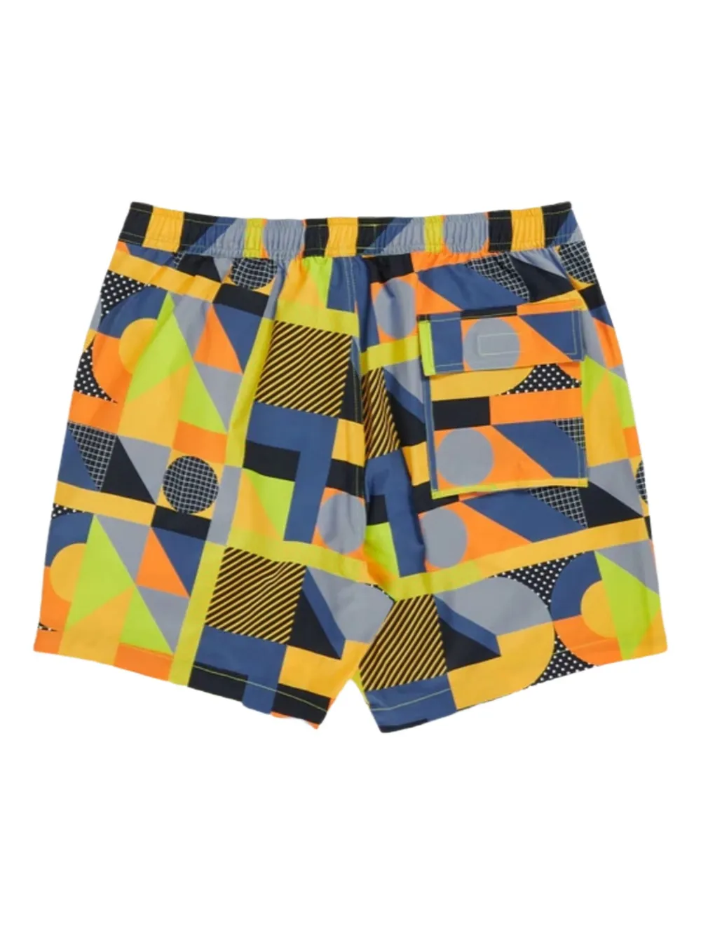 marineblauw trekkoordsluiting elastische tailleband geometrische print twee steekzakken aan de zijkant logopatch aan de zijkant klepzak aan de achterkant Zwemkleding moet over je eigen kleding worden aangepast.