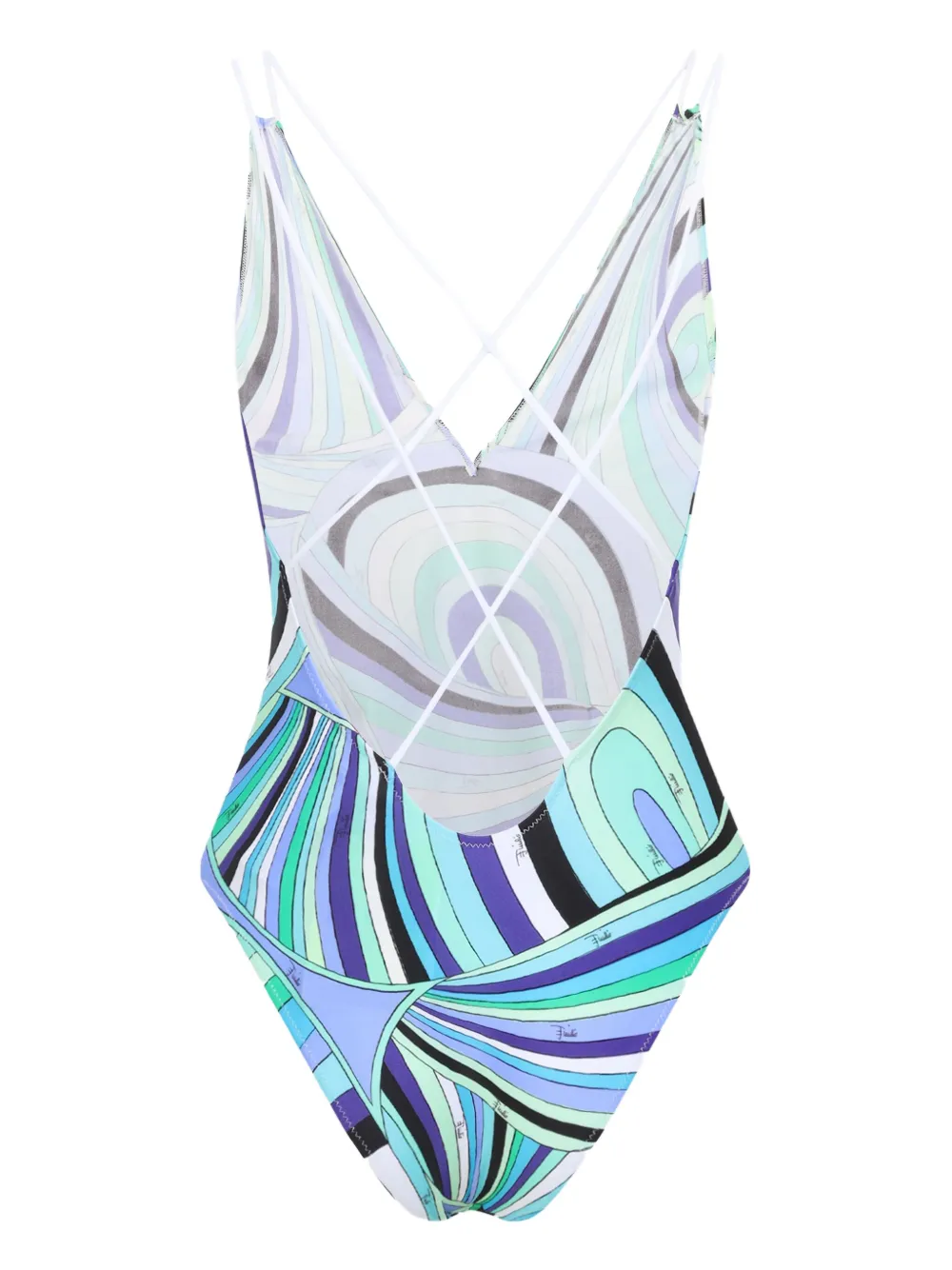 lichtgroen stretch design gekruiste bandjes aan de achterkant open rug Zwemkleding moet over je eigen kleding worden aangepast.