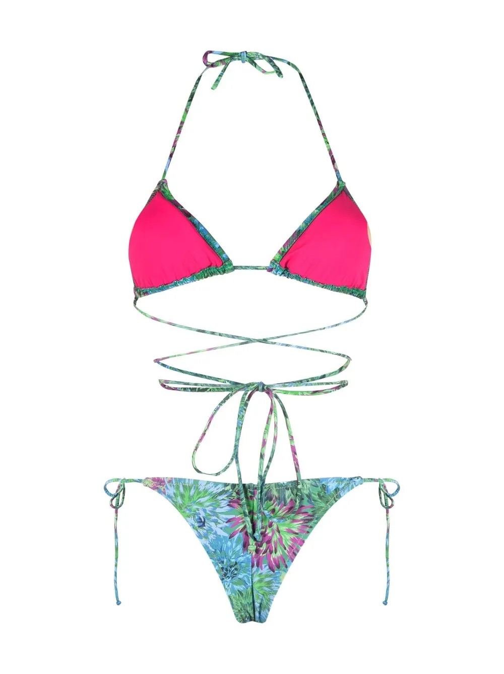 groen gerecyclede nylonblend bloemenprint triangel cup sluiting aan de achterkantBroeken: bloemenprint low waist striksluiting aan de zijkant Zwemkleding moet over je eigen kleding worden aangepast.