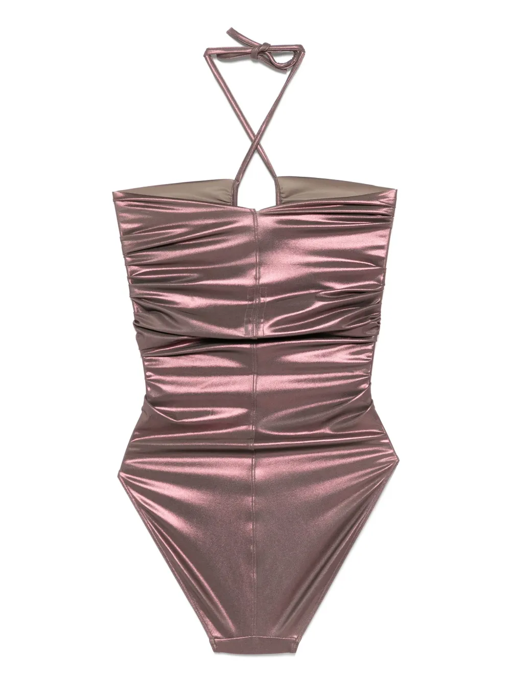 druivenpaars halternek striksluiting gusset detail ruchedetails Zwemkleding moet over je eigen kleding worden aangepast.
