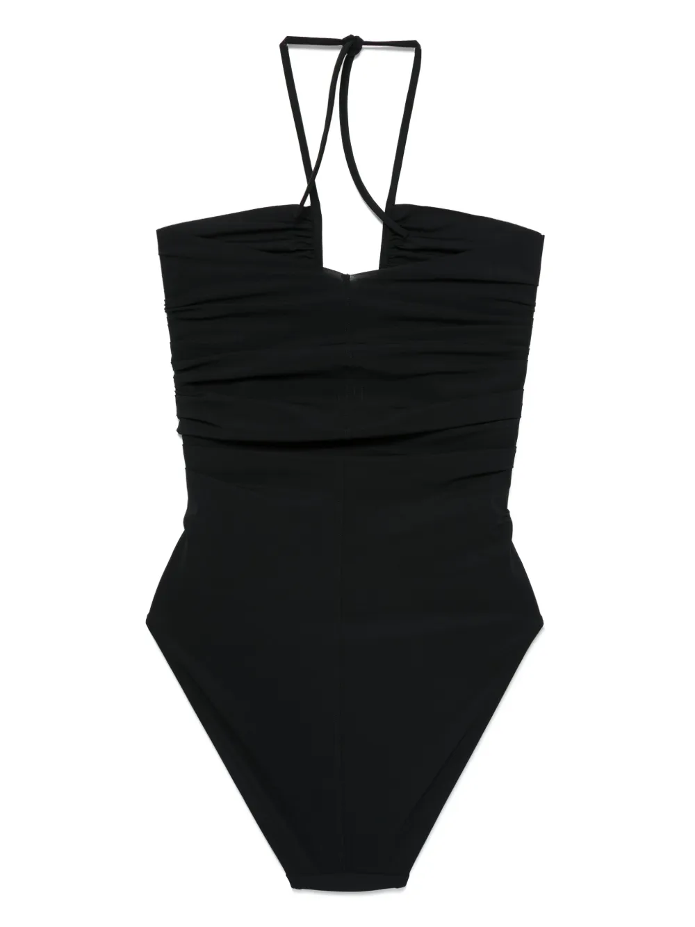 zwart halternek striksluiting Zwemkleding moet over je eigen kleding worden aangepast.