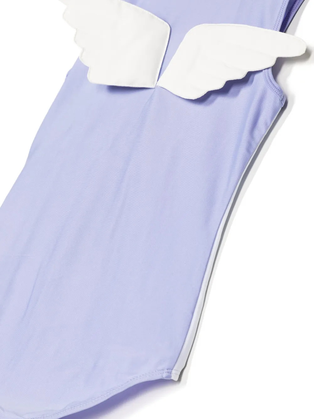 Lavendelpaars, onesie design, 3D details, zijstreep, logopatch aan de voorkant, hoge hals, halve rits aan de voorkant en mouwloos. Zwemkleding moet over je eigen kleding worden aangepast..