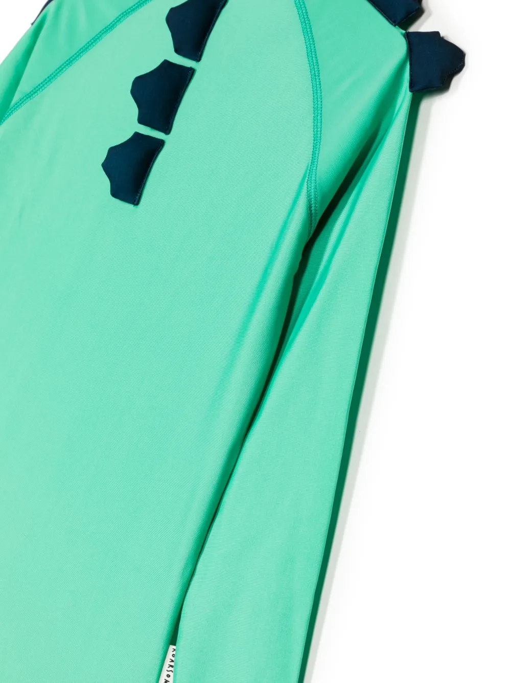 Mintgroen, marineblauw, patchdetail, applicatiedetail, hoge hals, lange mouwen en rechte zoom. Zwemkleding moet over je eigen kleding worden aangepast..