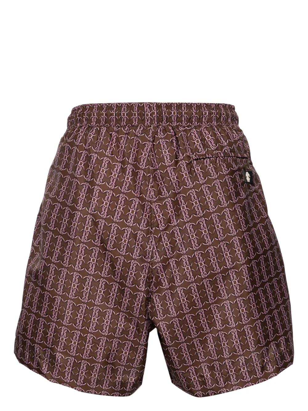 bruin/roze allover logoprint kenmerkend RC-logo logopatch aan de achterkant elastische tailleband met trekkoord kenmerkend Tiger Tooth detail dijlengte twee steekzakken aan de zijkant paspelzak aan de achterkant mesh voering Zwemkleding moet over je eigen kleding worden aangepast.