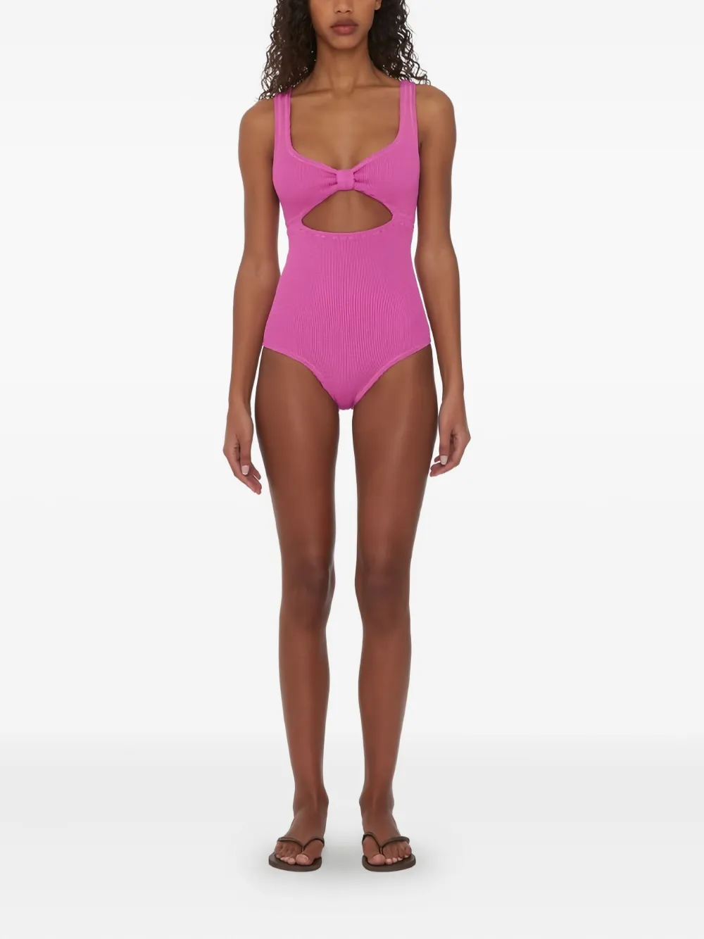 roze geribbelde textuur uitgesneden detail strikdetail mouwloos ronde hals Zwemkleding moet over je eigen kleding worden aangepast.