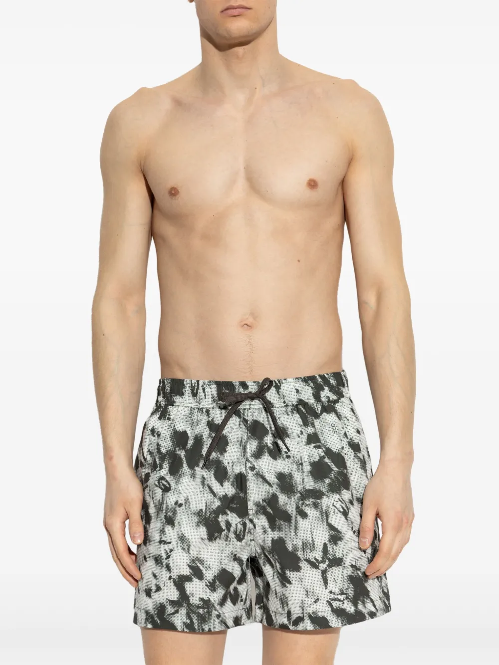 donkergroen elastische tailleband met trekkoord twee steekzakken aan de zijkant all-over grafische print paspelzak aan de achterkant Zwemkleding moet over je eigen kleding worden aangepast.