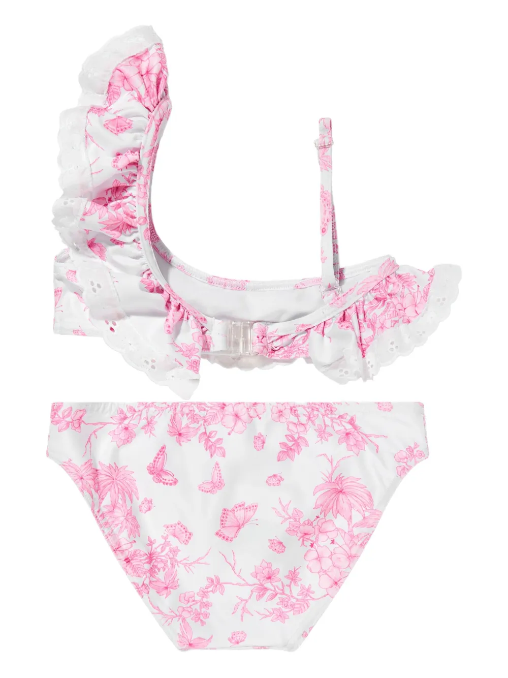 roze bloemenprint een enkel schouderbandje hals met ruches Zwemkleding moet over je eigen kleding worden aangepast.