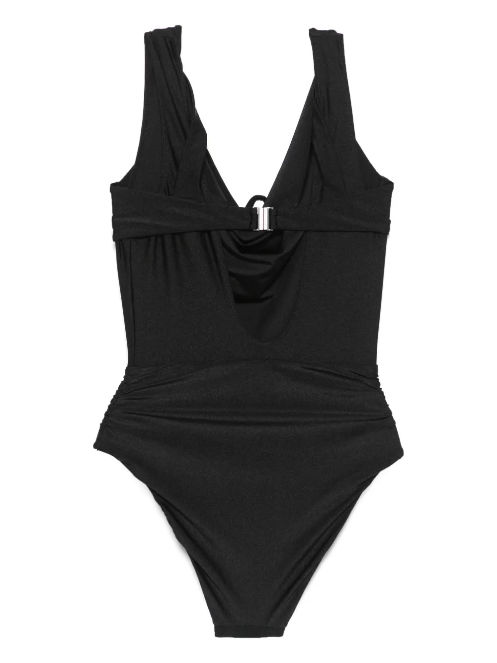 zwart haak- en oogsluiting aan de achterkant afneembare vlakken gedrapeerd detail Zwemkleding moet over je eigen kleding worden aangepast.