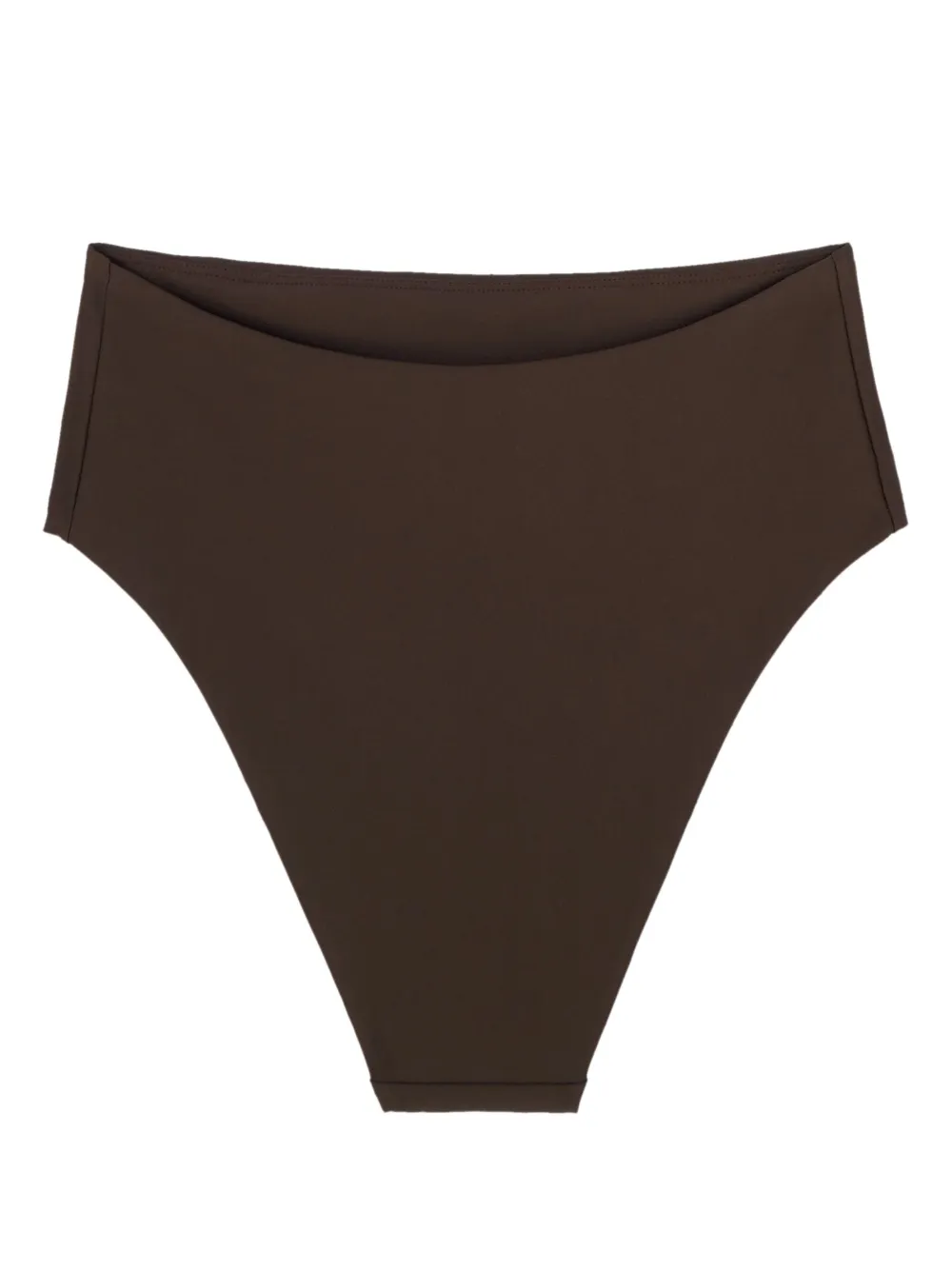 Chocoladebruin, stretch design, logoprint op de voorkant, high-waist, elastische tailleband en hoog uitgesneden. Zwemkleding moet over je eigen kleding worden aangepast..